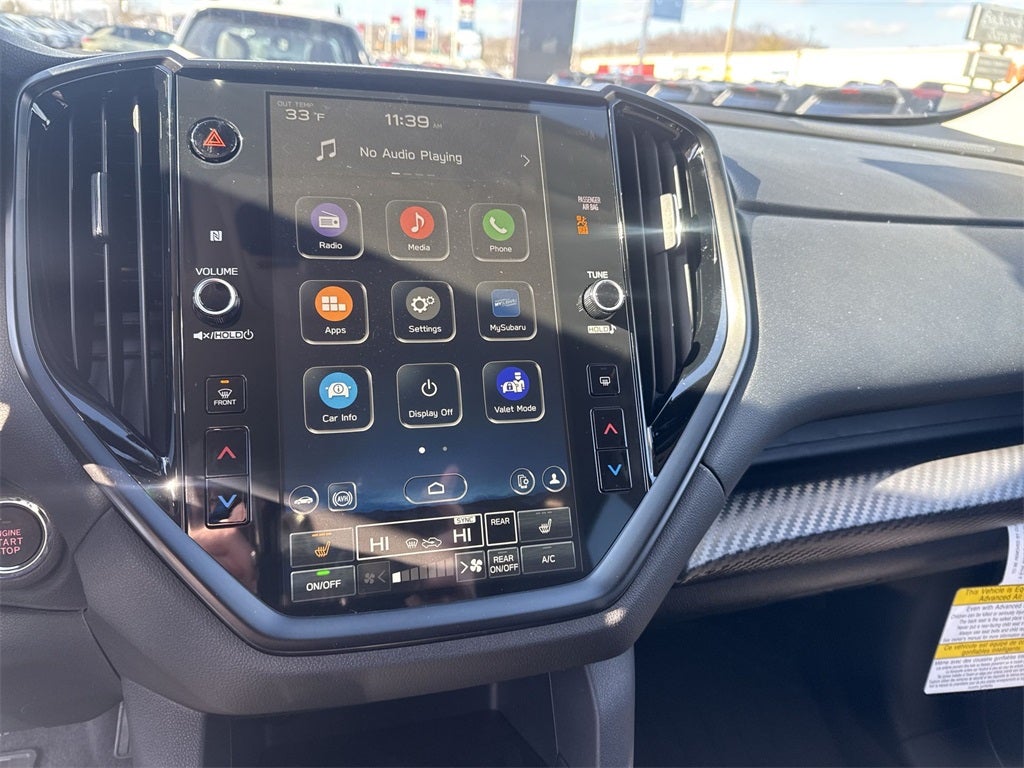 - Radio: Subaru 11.6" Multimedia Plus System -inc: AM/FM stereo HD Radio, multi-touch gesture high resolution display screen, voice activated controls, Bluetooth® audio streaming and hands-free phone connectivity w/SMS text messaging connectivity (refer to subaru.com for cell phone compatibility), iPod control capability, smartphone integration for Android Auto and Apple CarPlay w/full screen view and wireless connection, USB audio system update, audio system control switches, hands-free phone switches and voice command talk switch on steering wheel, 6 speakers, illuminated 3.5mm auxiliary input jack, illuminated USB A and C input/charge ports, SiriusXM w/360L (requires an active subscription: 4 months free trial included/subscription required after) and SiriusXM Travel Link (requires an active subscription: 4 months free trial included/subscription required after)