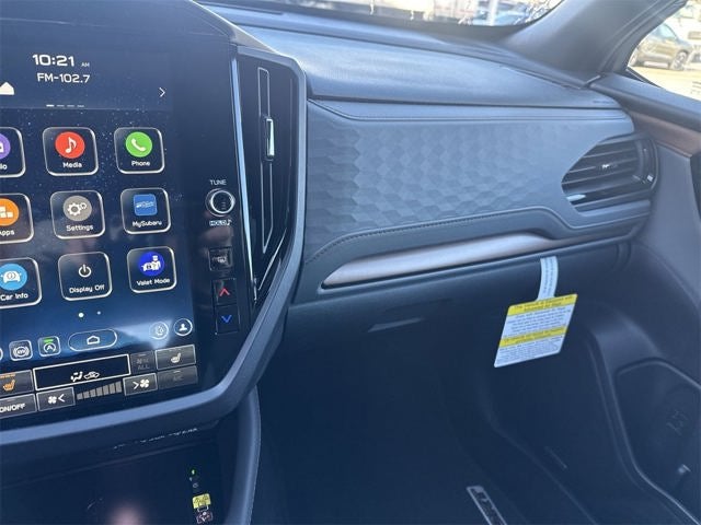 - Radio: Subaru 11.6" Multimedia Plus System -inc: valet mode, integrated center information display, AM/FM stereo HD Radio, multi-touch gesture high resolution display screen, voice activated controls, Bluetooth® audio streaming and hands-free phone connectivity w/SMS text messaging (refer to Subaru.com for cellphone compatibility), iPod control capability, smartphone integration: Android Auto and Apple CarPlay w/full screen view and wireless connection, USB and Over The Air (OTA) audio system update, steering wheel controls, 6 speakers, 3.5mm auxiliary input jack and roof mounted audio and satellite antenna