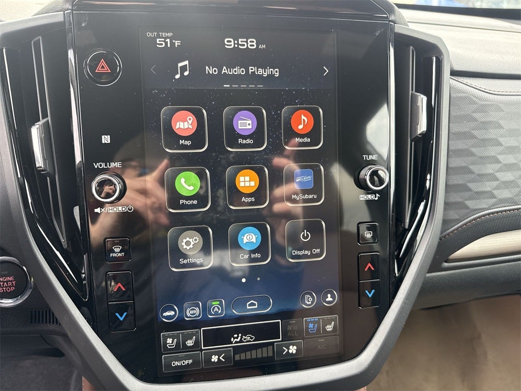 - Radio: Subaru 11.6" Multimedia Navigation System -inc: valet mode, integrated center information display, AM/FM stereo HD Radio, multi-touch gesture high resolution display screen, voice activated controls, voice activated navigation, Bluetooth® audio streaming and hands-free phone connectivity w/SMS text messaging (refer to Subaru.com for cellphone compatibility), TomTom navigation software w/what3words, iPod control capability, smartphone integration: Android Auto and Apple CarPlay w/full screen view and wireless connection, SiriusXM satellite radio w/360L (free 4-month trial subscription included), USB and Over The Air (OTA) audio system update, USB and Map Over The Air (MOTA) TomTom navigation system update (3 years free map updates), steering wheel controls, harman/kardon speaker system w/11 speakers and 576 watt equivalent maximum output amplifier, 3.5mm auxiliary input jack and roof mounted audio, satellite antenna and SiriusXM Travel Link (4 months free trial included/subscription required after)