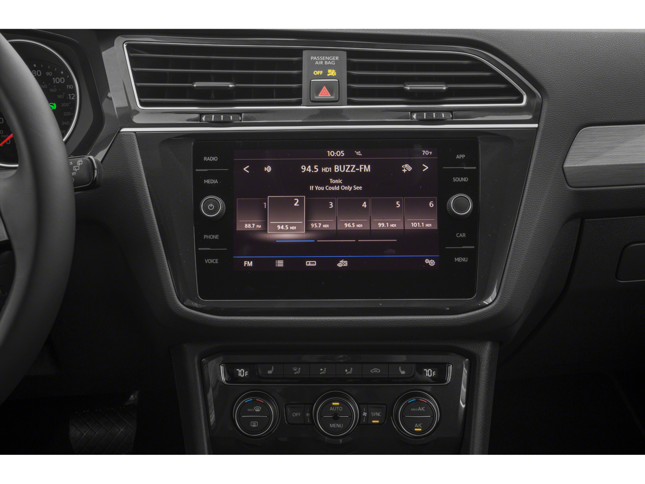 • Radio: Composition Media AM/FM/HD -inc: 8" touchscreen, dual USB input, voice control, 6-speaker sound system, VW App-Connect smartphone integration and interface w/Apple CarPlay, Android Auto and MirrorLink, capability for in-vehicle 4G LTE enabled Wi-Fi (cellular data plan required; includes limited trial), capability for VW Car-Net services (capabilities for certain services vary; requires enrollment or subscription), Bluetooth® connectivity (for compatible devices), SiriusXM satellite radio w/limited-time trial subscription and USB charging-only port facing 2nd row seat