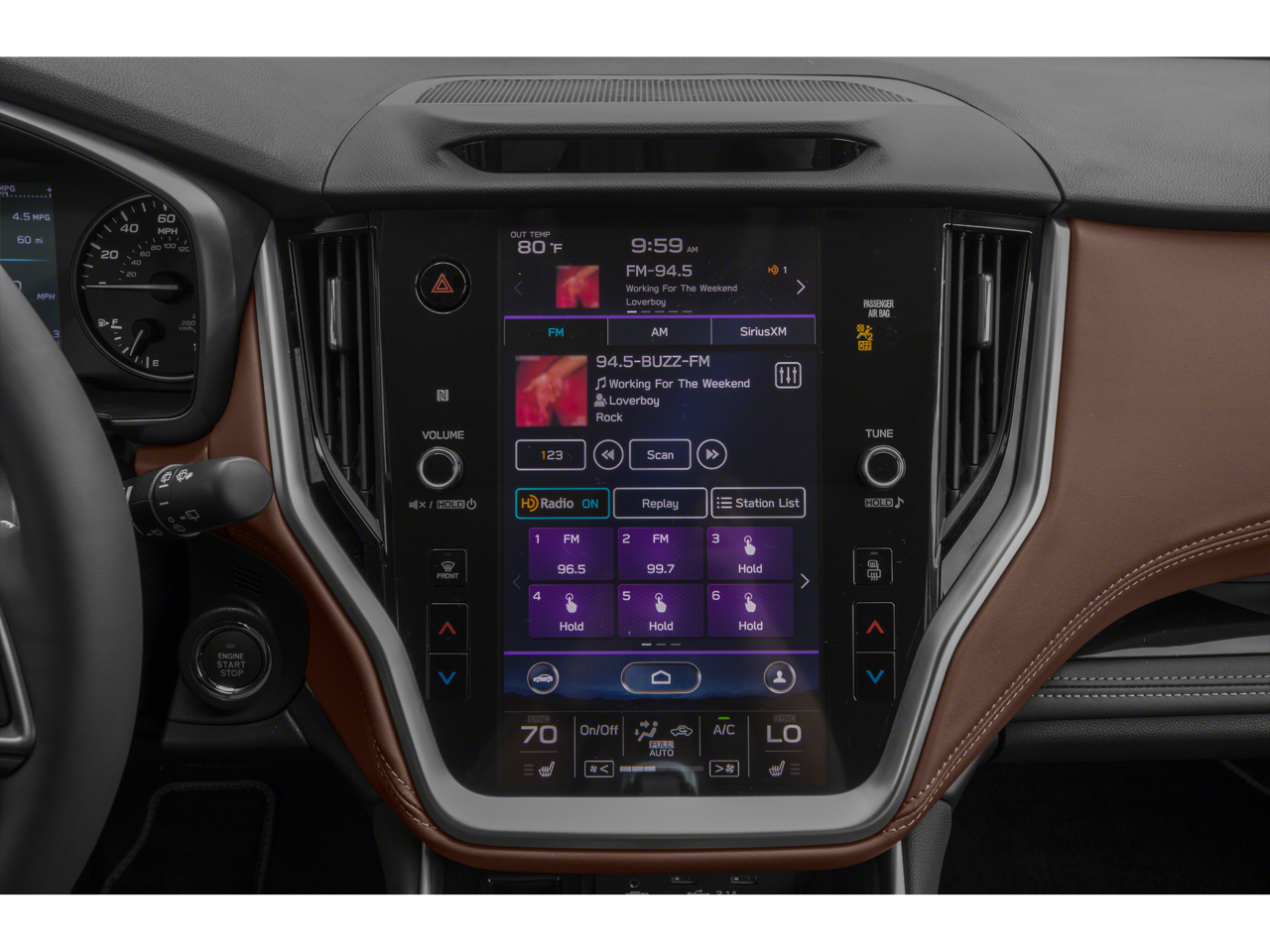 • Radio: Subaru STARLINK 11.6" Multimedia Nav System -inc: AM/FM stereo, HD Radio, voice activated controls and navigation, Bluetooth® audio streaming and hands-free phone connectivity w/SMS text messaging (applicable w/compatible cellphone), Near Field Communication (NFC), iPod control capability, SiriusXM All Access radio (4 months free trial/subscription required after), SiriusXM Traffic (3 years free trial/subscription required after), SiriusXM Travel Link (3 years free trial/subscription required after), smartphone integration: Android Auto, CarPlay and STARLINK cloud applications, 3.5mm auxiliary input jack and dual USB input ports
